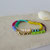 Bracelet double ajustable, en perles de verre, céramique, étain et laiton plaqué or, fermé par un mousqueton.