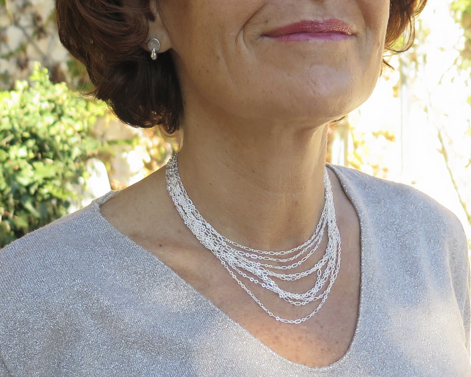 Collier ras du cou composé de plusieurs chaines, plaqué argent 10 microns,